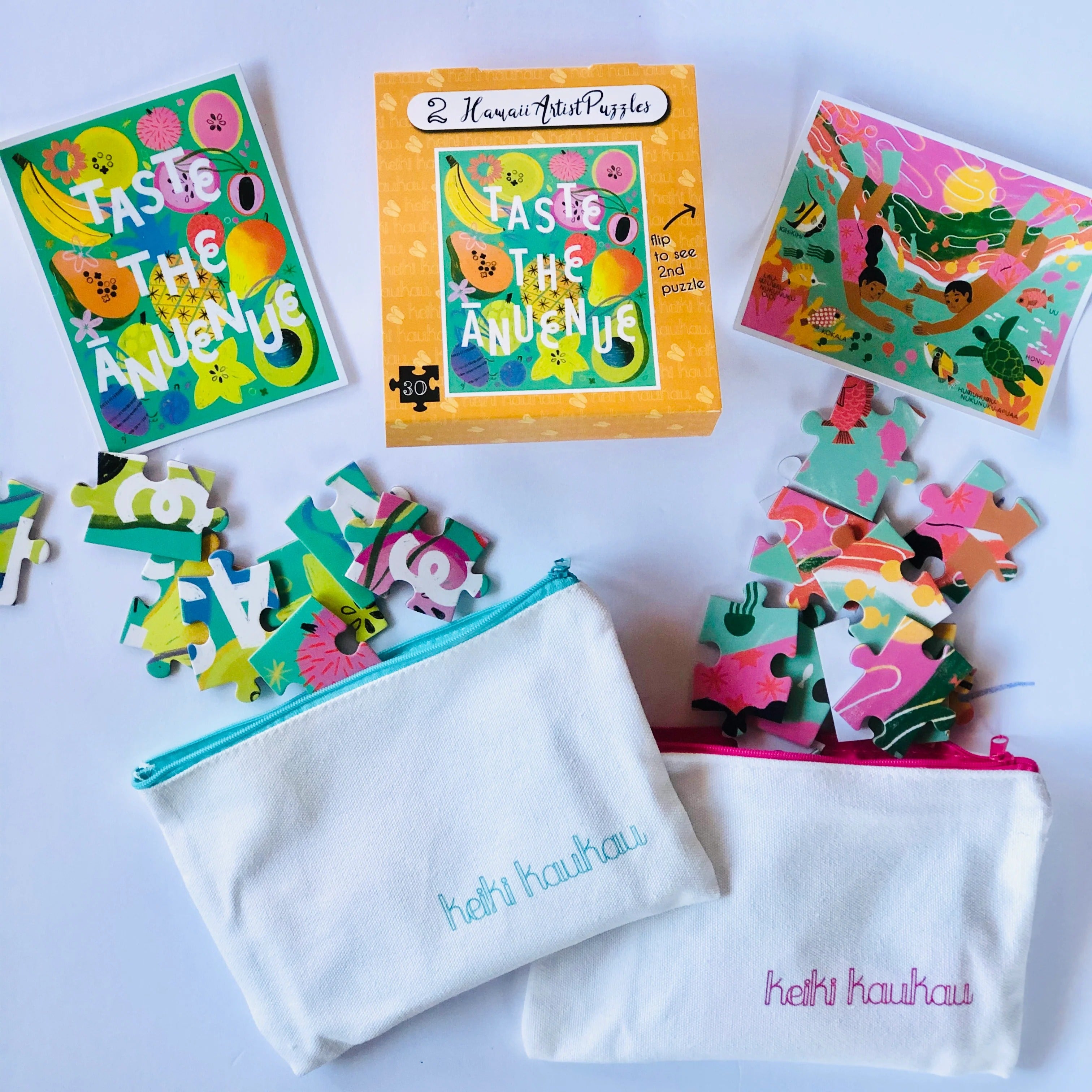 Double the puzzles, double the fun! Keiki Kaukau has teamed up with local illustrator Kimberlie Wong to create two delightful designs that are pretty enough to frame.