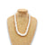 The pearl white glossy dragon scale beads are some of the largest beads made by manufacturers in Japan. By randomly placing over 900 dragon scale beads in this necklace, no two are alike. This statement necklace is finished with a pearl white acrylic magnet end cap that has a stronghold.
